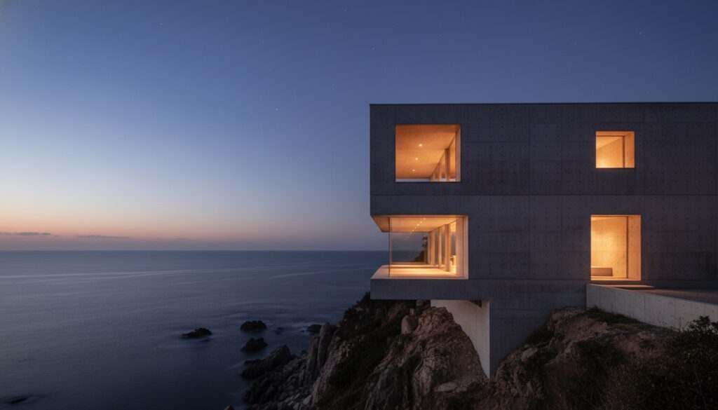 コンクリートの壁面は、微細な気泡や骨材の配列によって独自のテクスチャを持つ。ここに、計算された角度からの光──例えば、壁面を舐めるように照らす「グレージング・ライト」を投射することで、平滑に見えた表面に無数の陰影が浮かび上がる。これは単なる壁ではなく、光の粒子を受け止めるスクリーンとなるのだ。香川の建築家として、私が常に意識するのはこの「受容体としての壁」である。瀬戸内の海面が光を乱反射するように、コンクリートもまた、刻一刻と変化する自然光を吸い込み、吐き出す呼吸をしているのである。
