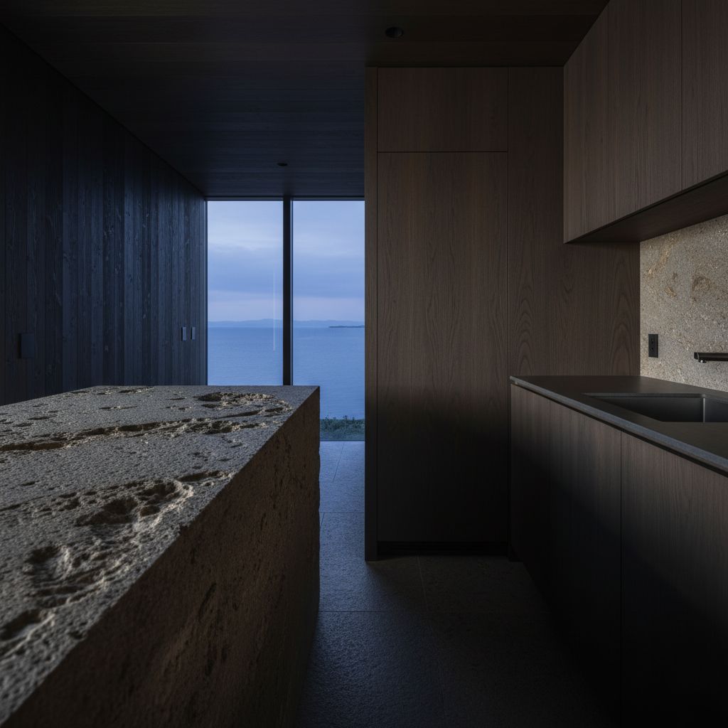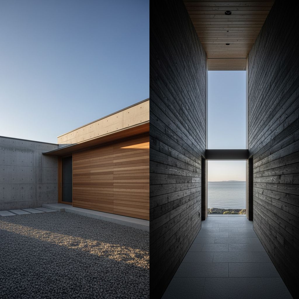 3. 素材の物語:庵治石と焼杉が織りなすマテリアリティ