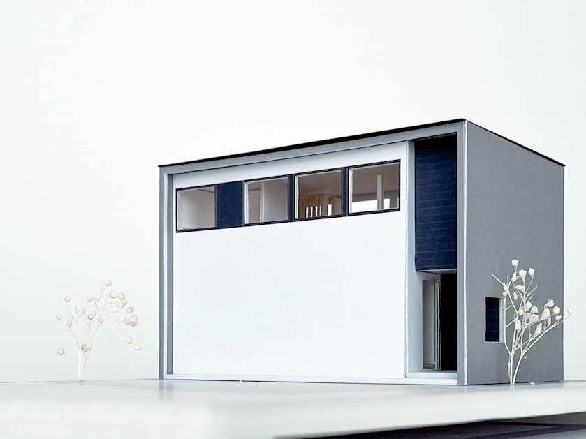 このプレゼン案は、敷地調査を設計に繋げるための橋渡しです。次ステップでは、これをもとに詳細な立面・断面・内観パースを制作し、具体的な素材・色・仕上げを詰めていきます。