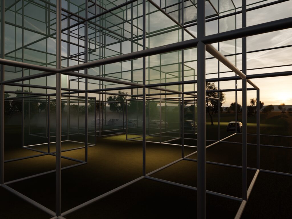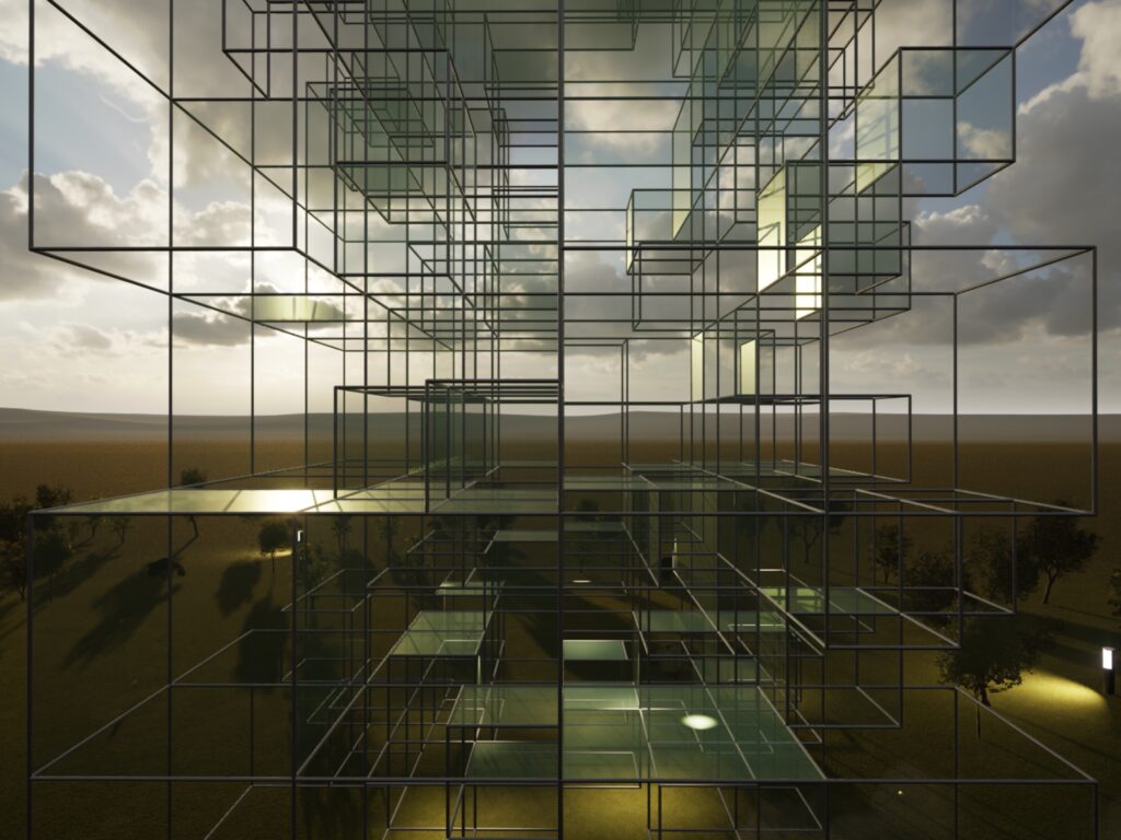 ランダムに構成された金属フレームとガラスの建築。広大な自然に囲まれたこの空間は、時間の変化と共鳴しながら詩的な建築体験を生み出します。光、風、構造、そして風景。そのあいだに立ち上がる透明な物語をご覧ください。