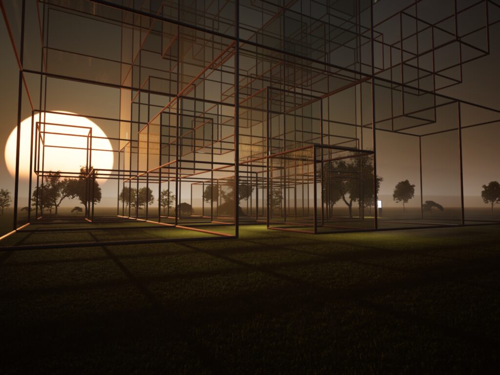 Fractured Frames Pavilion|緑に浮かぶ、光と構造の詩学